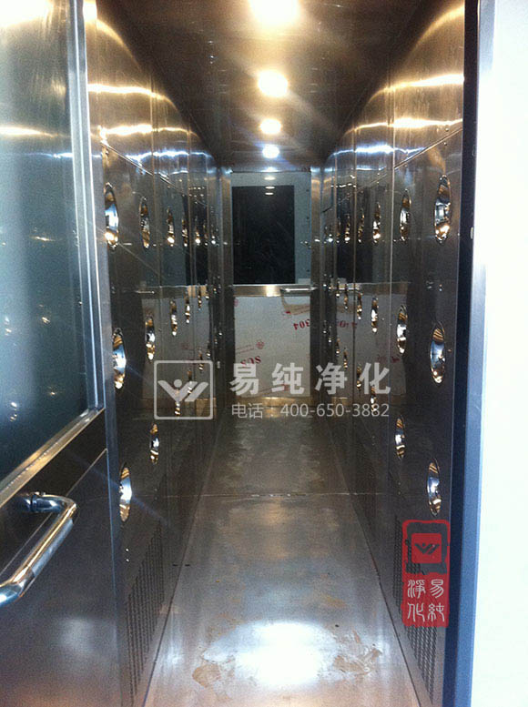 目前烘焙行業已經逐步進入到凈化生產環節,已將全部生產區域實現無菌化管理和生產。人員從門廳進入后,即進入更鞋室,更完鞋之后分別男女員工進入車間進行更衣,更衣完成之后是洗手消毒,然后進入風淋室,通過強制員工吹淋和消毒后進入車間,從而避免將細菌和污染源帶入車間。易純公司此次提供的風淋室為內不銹鋼,外鋼板烤漆風淋室,電器配置為液晶藍屏顯示器,全自動感應吹淋風淋室。