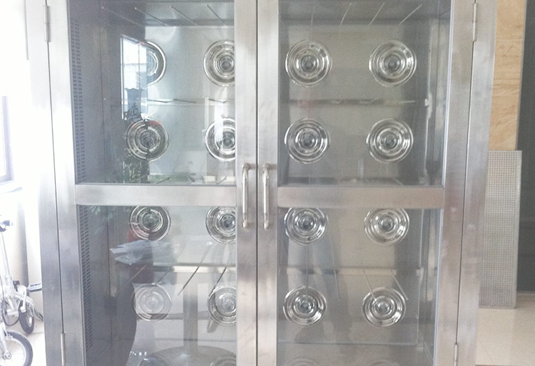 2. 潔凈柜出風口采用30mm直徑自動旋轉噴嘴,在吹淋過程中自動360度旋轉方向,出風口風速達到10-20m/s,噴嘴數量共計16只;