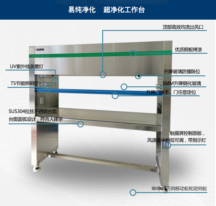 安全可靠的保障措施: 嚴(yán)格按照國際電氣安全標(biāo)準(zhǔn)規(guī)范設(shè)計,確保產(chǎn)品具有多重安全保護(hù)措施,采用柔光型的照明燈與紫外線殺菌燈控制單獨(dú)控制,同時需要注意的是紫外線殺菌只能在工作前開殺菌,在人工作時不允許開紫外線殺菌燈,避免紫外線殺菌燈對人體皮膚造成灼傷。